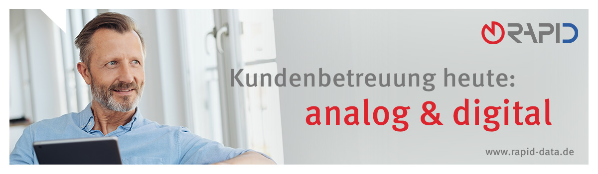 Digitalisierung, Kundenmanagement, Optimierung von Prozessen: All das braucht Zeit – von der Entscheidung bis zur Umsetzung. Umso wichtiger ist es, nichts auf die lange Bank zu schieben. Gerne erstellt Rapid Data gemeinsam mit Ihnen einen individuellen Fahrplan. „Dabei sagen wir Ihnen nicht, was Sie alles tun müssten, sondern bringen in Erfahrung, was Sie eigentlich wollen“, erklärt Sven Hoffmeister Leitung Rapid Data Vertrieb. Das Ergebnis: Sie schaffen neben Ihrer persönlichen Begleitung auch den Sprung in die digitale Kundenbetreuung.