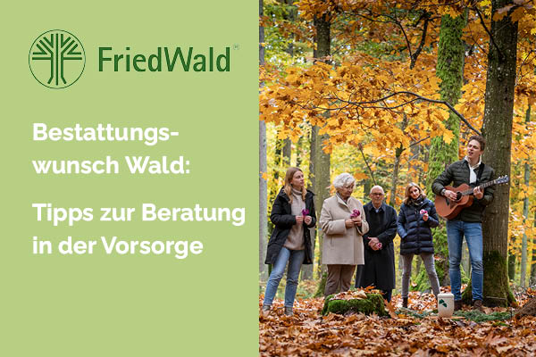 Bestattungswunsch Wald: Wie Sie zur Vorsorge mit FriedWald beraten und unterstützen können