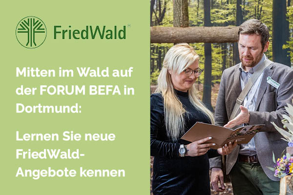 Waldatmosphäre auf der FORUM BEFA in Dortmund mit neuen FriedWald-Angeboten