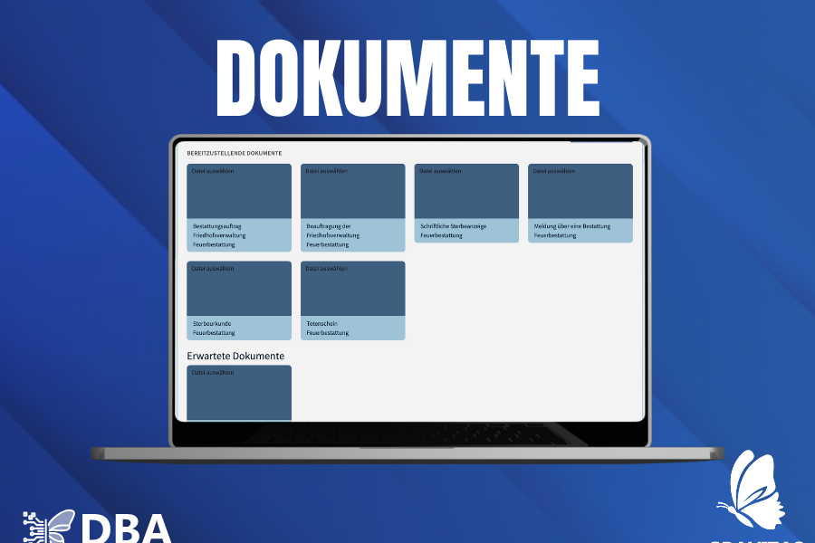 Der Digitale Bestatter-Assistent vereint Bestattersoftware mit innovativen KI-Anwendungen und modernen Plattformen rund um Vorsorge, Bestattung und Nachlass. Unsere Module vereinfachen die Abwicklung von Sterbefällen und ermöglichen es Bestattungsbetrieben, sich ganz auf die Bedürfnisse der Kunden zu konzentrieren.