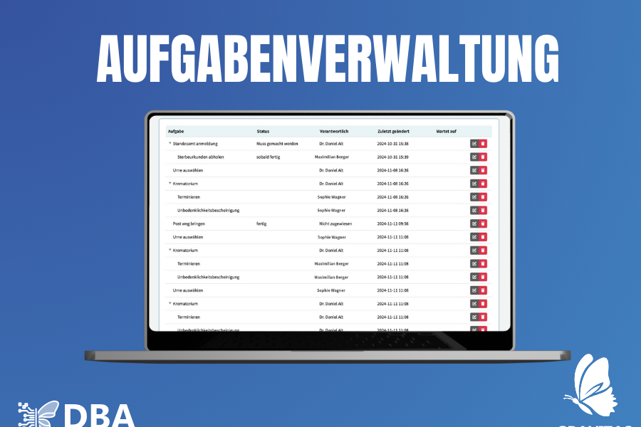 Vereinfachen Sie die gesamte Sterbefallabwicklung durch effizientes Aufgabenmanagement und automatisierte Abläufe.