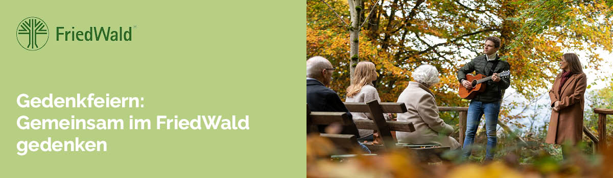 Die Gedenkfeiern in freier Natur werden von Pfarrerinnen und Pfarrern oder freien Rednerinnen und Rednern gestaltet und in der Regel musikalisch begleitet. Kulisse für die Gedenkfeiern ist meist der Andachtsplatz im FriedWald. Hier wird im feierlichen Rahmen gemeinsam der Verstorbenen gedacht. Im Anschluss an die Feier haben die Angehörigen Gelegenheit zum Austausch. Viele Menschen lassen den Tag im Wald am Baumgrab ausklingen.