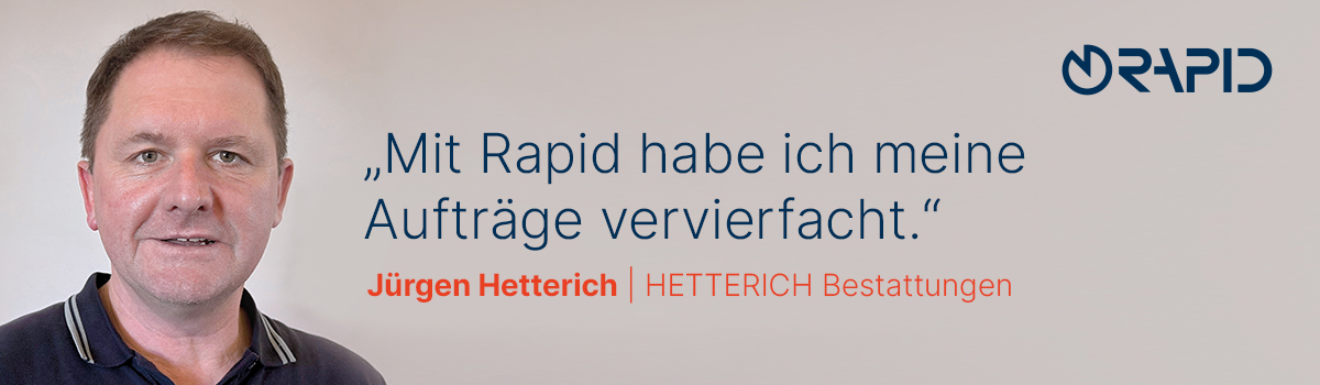 Der Abmelde-Assistent ist ein echter Gamechanger: Selbst meine 75-jährige Schwiegermutter erledigte innerhalb einer Stunde alle Abmeldungen für meinen verstobenen Schwiegervater – von zahlreichen Verträgen bis hin zu noch so kleinen Vereinen. Und der Musik-Service für Trauerfeiern entlastet alle: Statt 257 Versionen von ‚Ave Maria‘ für die Angehörigen durchzuwühlen, können sie selbst einfach in die Titel reinhören, ihren Favoriten aus der großen Rapid Musikbibliothek wählen und zeitlich zuordnen.