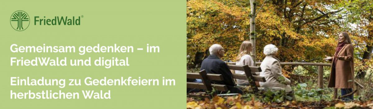 Ob im Wald oder online – FriedWald bietet Orte, an denen Erinnerungen lebendig bleiben. Machen Sie Ihre Kundinnen und Kunden gerne auf die herbstlichen Gedenkfeiern im FriedWald und die Möglichkeit des ortsunabhängigen Gedenkens mit einer FriedWald-Gedenkseite aufmerksam.