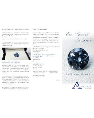 Die Diamantbestattung ist die persönlichste und einfühlsamste Art Abschied zu nehmen. Der Erinnerungsdiamant ist ein Symbol der Liebe, Verbundenheit und Wertschätzung. ALGORDANZA ist rätoromanisch und bedeutet "Erinnerung". Unsere Erinnerungsdiamanten werden seit 2004 in unserem Schweizer Werk in Domat/Ems in Graubünden hergestellt.