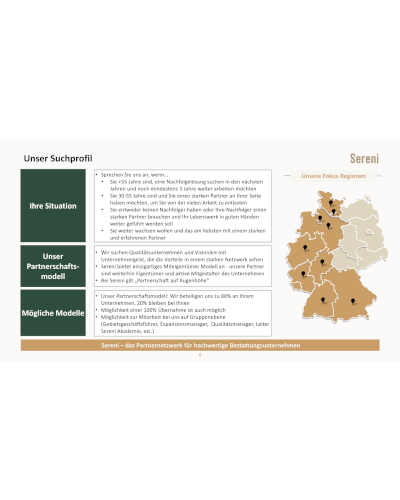 Partnerschaftsmodell: Wir bieten ein einzigartiges Miteigentümer Modell an - unsere Partner sind weiterhin Eigentümer und aktive Mitgestalter des Unternehmen