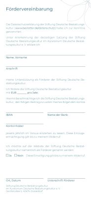 Seit 1997 setzt sich die Stiftung Deutsche Bestattungskultur für den Erhalt und die Förderung einer menschenwürdigen und dabei zeitgemäßen Bestattungskultur ein. Wir möchten die Auseinandersetzung mit Fragen rund um das Sterben und Trauern aus Randbereichen und Fachkreisen in die Öffentlichkeit tragen. Dazu fördern wir unterschiedlichste Partner aus Wissenschaft und Kultur, die sich im weiten Feld der Bestattungs-, Trauer- und Friedhofskultur engagieren. Informieren Sie sich auf unserer Website über unsere laufenden Förderprojekte und unser darüber hinausgehendes Engagement. Bei Fragen sind wir gerne für Sie da – wir freuen uns auf den Austausch mit Ihnen!