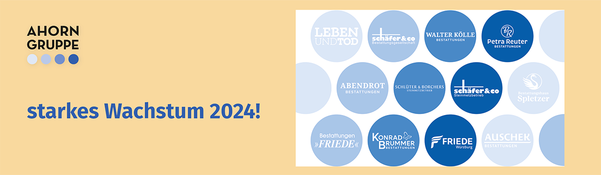 Die gestiegene Zahl an Anfragen zeigt, dass der Bedarf an Nachfolgelösungen stetig steigt und das Interesse, sein Bestattungsunternehmen an die Ahorn Gruppe zu übergeben, groß ist. Auch dieses Jahr stand für die Ahorn Gruppe im Zeichen der Unternehmenssicherung und -erweiterung, was die Nachfolge lokal verwurzelter Bestattungsinstitute gewährleistet. Mittlerweile zählt die Unternehmensgruppe mehr als 95 Bestattungsmarken. Im laufenden Jahr 2024 hat die Ahorn Gruppe acht Bestattungsunternehmen und eine Messe übernommen und führt diese fort.