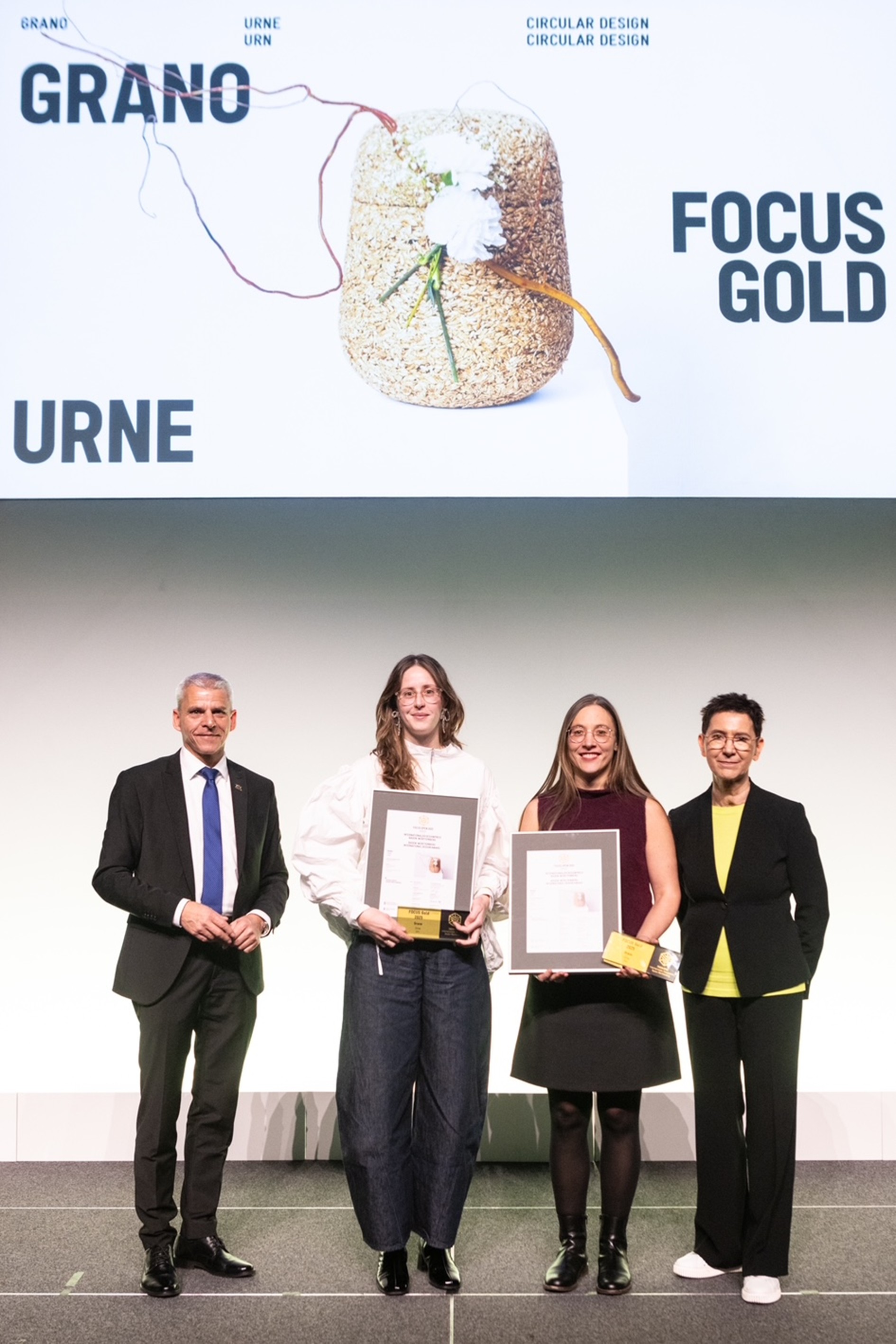 Diese Jahr ging die höchste Auszeichnung FOCUS OPEN Gold, in der Kategorie „Circular Design“ an urnique mit ihrer innovativen Spelzurne Grano.