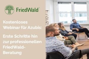 Sie möchten beim kostenlosen Webinar am 21. März um 14 Uhr dabei sein und sich das FriedWald-Starter-Paket für Azubis sichern? Dann melden Sie sich direkt an.